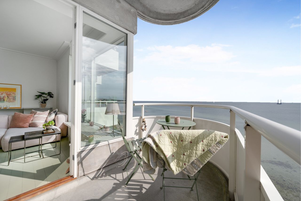 panoramaudsigt over Øresund, 2 altaner, elevator og parkering.