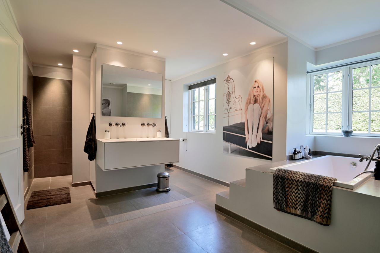 Præsentabelt flisebelagt ankomstplads med smedejernslåge byder velkommen til ejendommen, der indeholder: