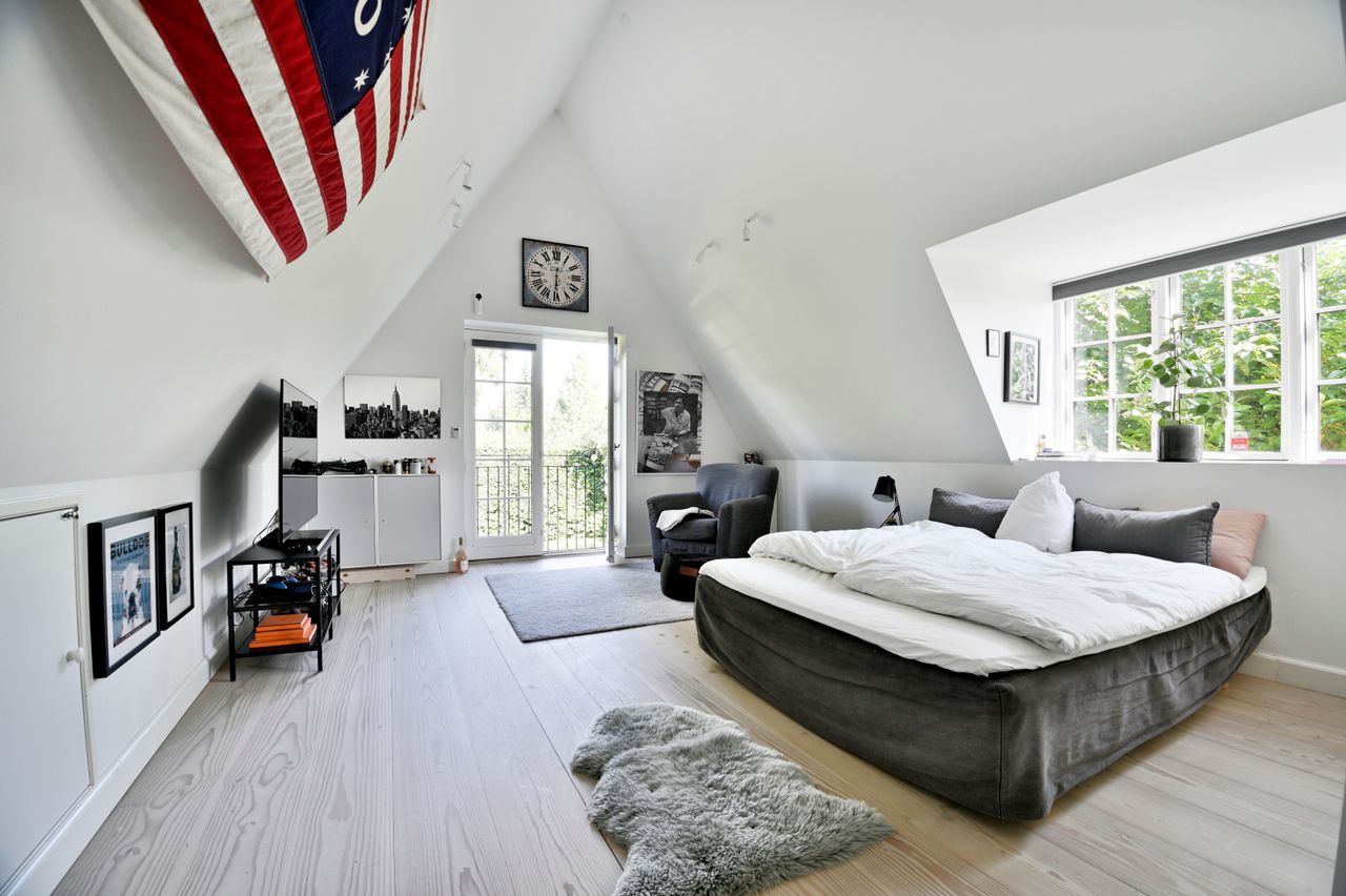 I den anden fløj af villaen findes på 1. sal en afdeling med badeværelse og 3 værelser, der i dag er indrettet til forældresoveværelse, walk-in mv. Endvidere stort bryggers og værelse med eget bad.