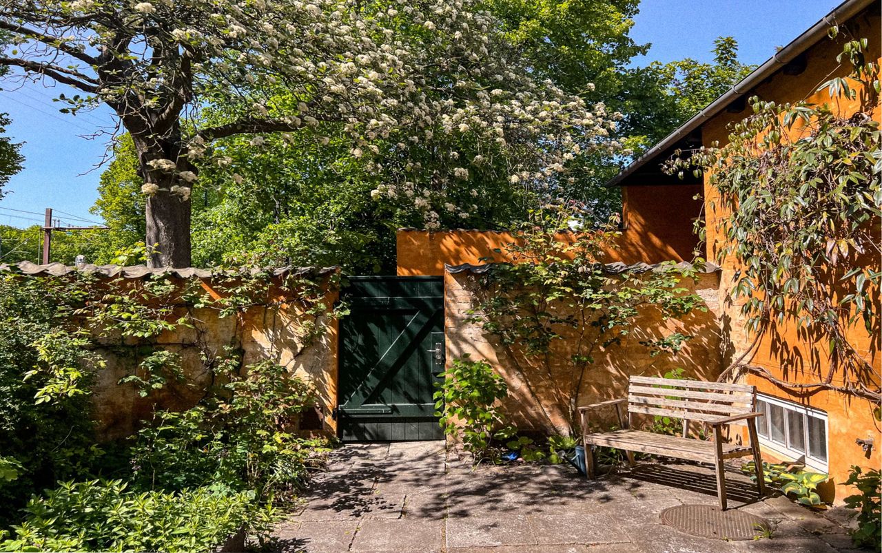 med udsigt til haven.