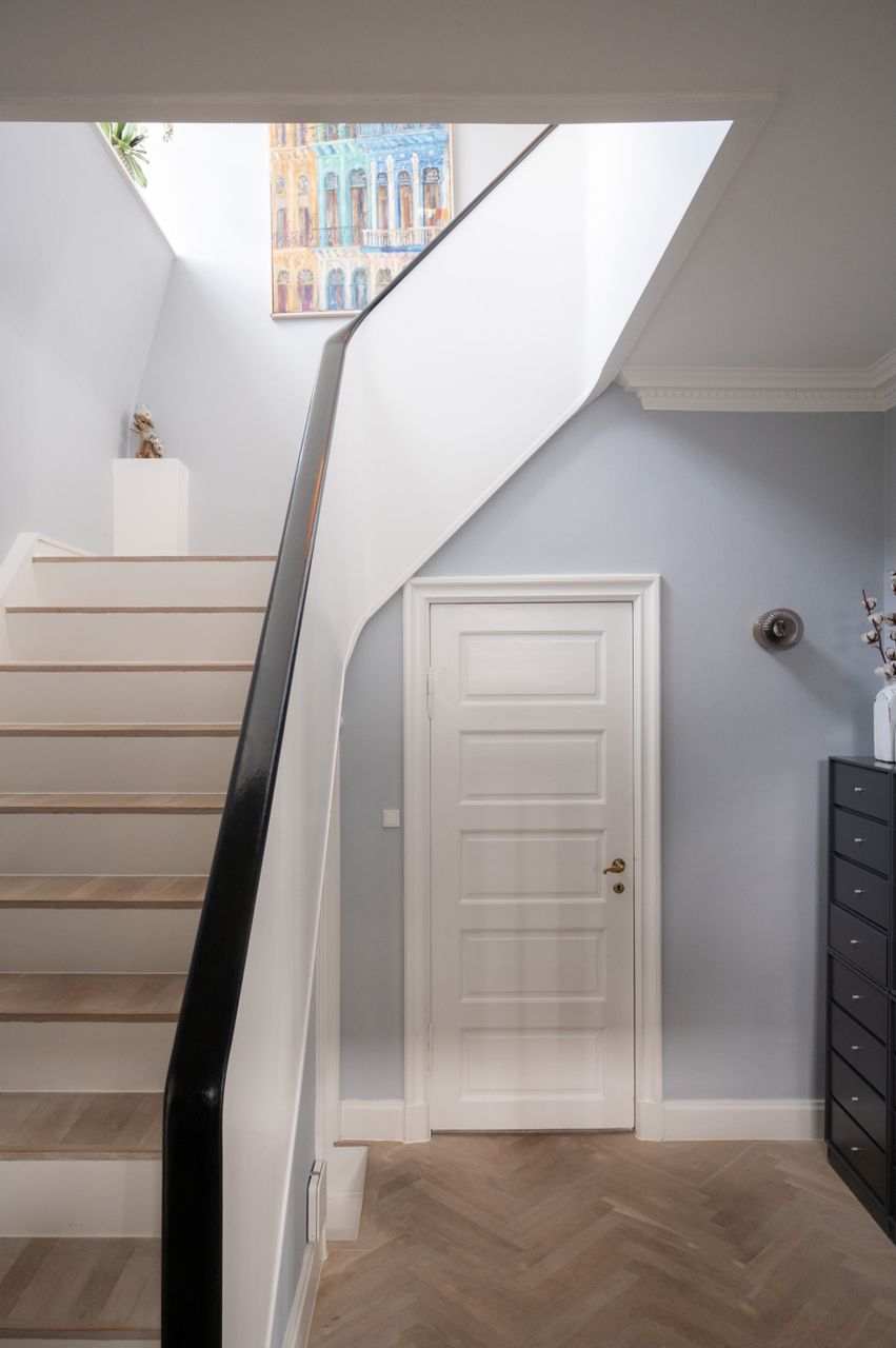 Villaen fremtræder overalt i usædvanlig god stand uden støj fra naboer og er renoveret med respekt for husets oprindelige karakter, herunder høje paneler og den originale stuk, der er mere end 100 år gammel.