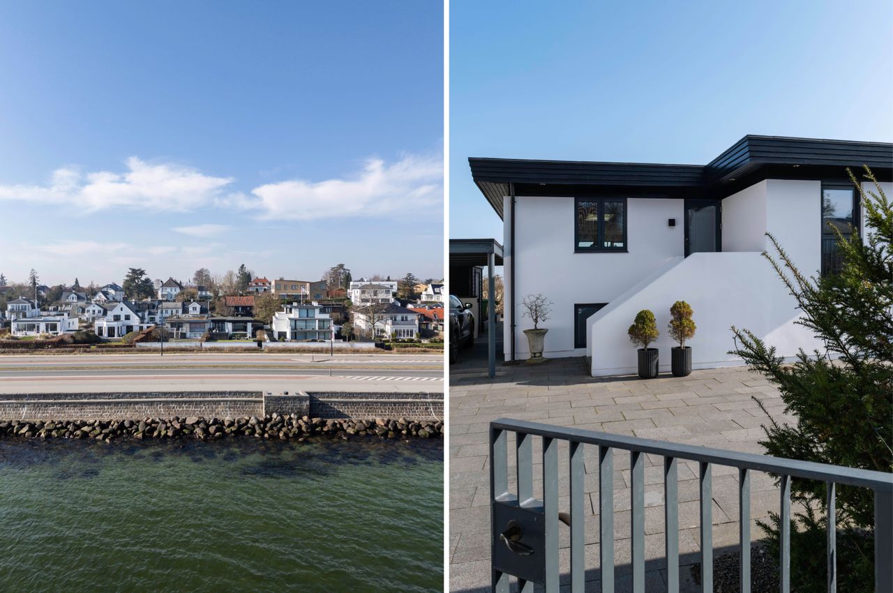 Gennemrenoveret eksklusiv hvidpudset funkisbolig (½ dobbelthus) i ét plan med en suveræn underetage, beliggende på en pragtfuld ca. 565 m² stor udsigtsgrund på Den Gamle Strandvej i Skovshoved i 1. række.