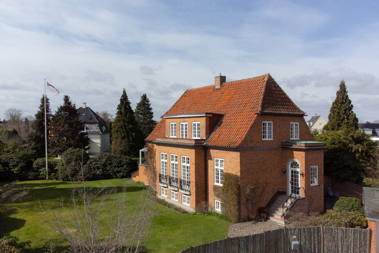 På én gang herskabelig og charmerende palævilla, opført i 1928 med facader i røde mursten, hvidmalede palævinduer og tag med røde tegl, særdeles eftertragtet beliggende på en 1062 m² stor solrig grund for enden af lukket vej, tæt på Skovshoved Havn, skolen, kirken og Skovshoved Idrætsforening.