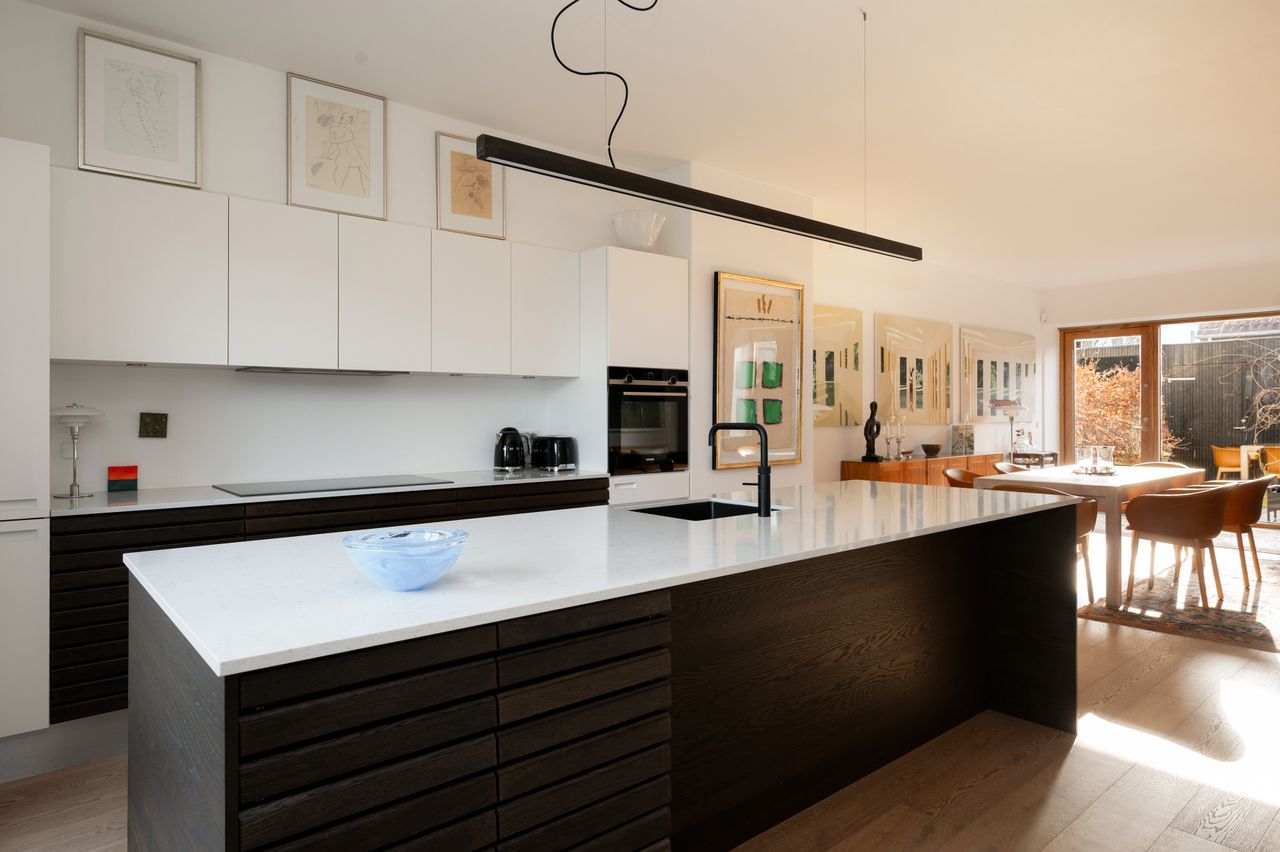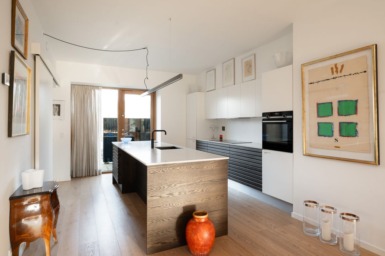 På Christiansholms Vænge udbydes nu et af bebyggelsens absolut bedst placerede rækkehuse – opført i 2022 af Danielsen Arkitekter. Her forenes stram, moderne arkitektur med lys og luft og en skøn beliggenhed i gåafstand til Dyrehaven, Klampenborg Station samt Bellevue Strand og Øresund.