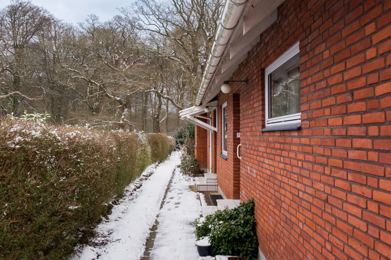På en absolut enestående beliggenhed på Dyrehavegårdsvej udbydes denne sjældne ejendom, hvor en stor, privat grund på 1.474 m² støder direkte op til Dyrehaven. På den ene side åbner naturen sig med fri udsigt til skov og dyreliv, mens der på den modsatte side er en smuk, åben udsigt over hestefolde. Ejendommen er ideelt placeret få skridt fra Den Røde Låge med direkte indgang til Dyrehaven - en beliggenhed, der ganske enkelt er blandt de mest eftertragtede i området.