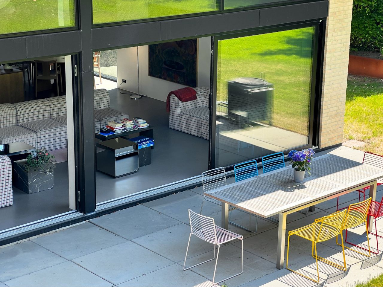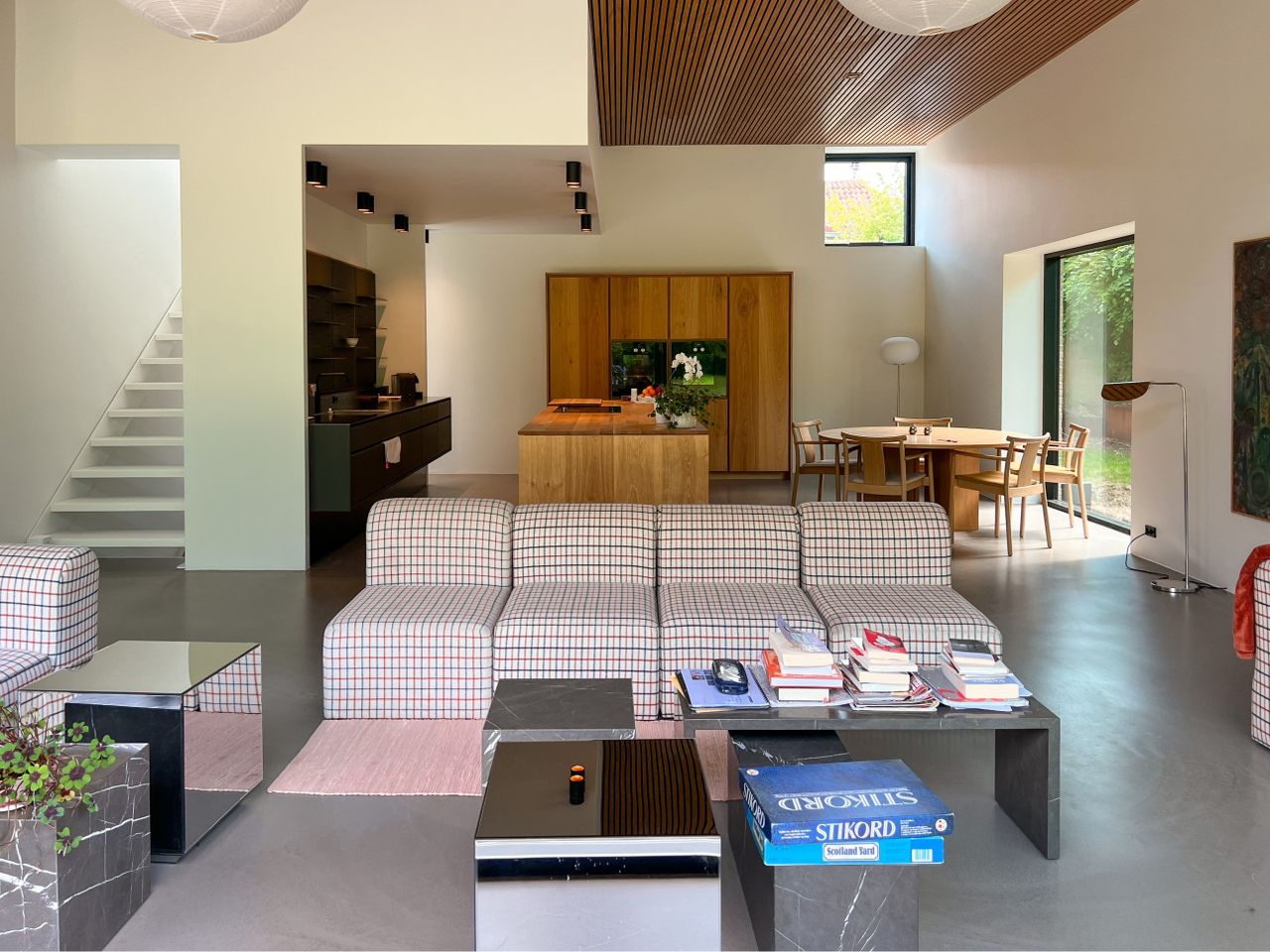 suveræn loftshøjde og kæmpestore vinduespartier mod terrassen og haven mod sydvest, der giver et