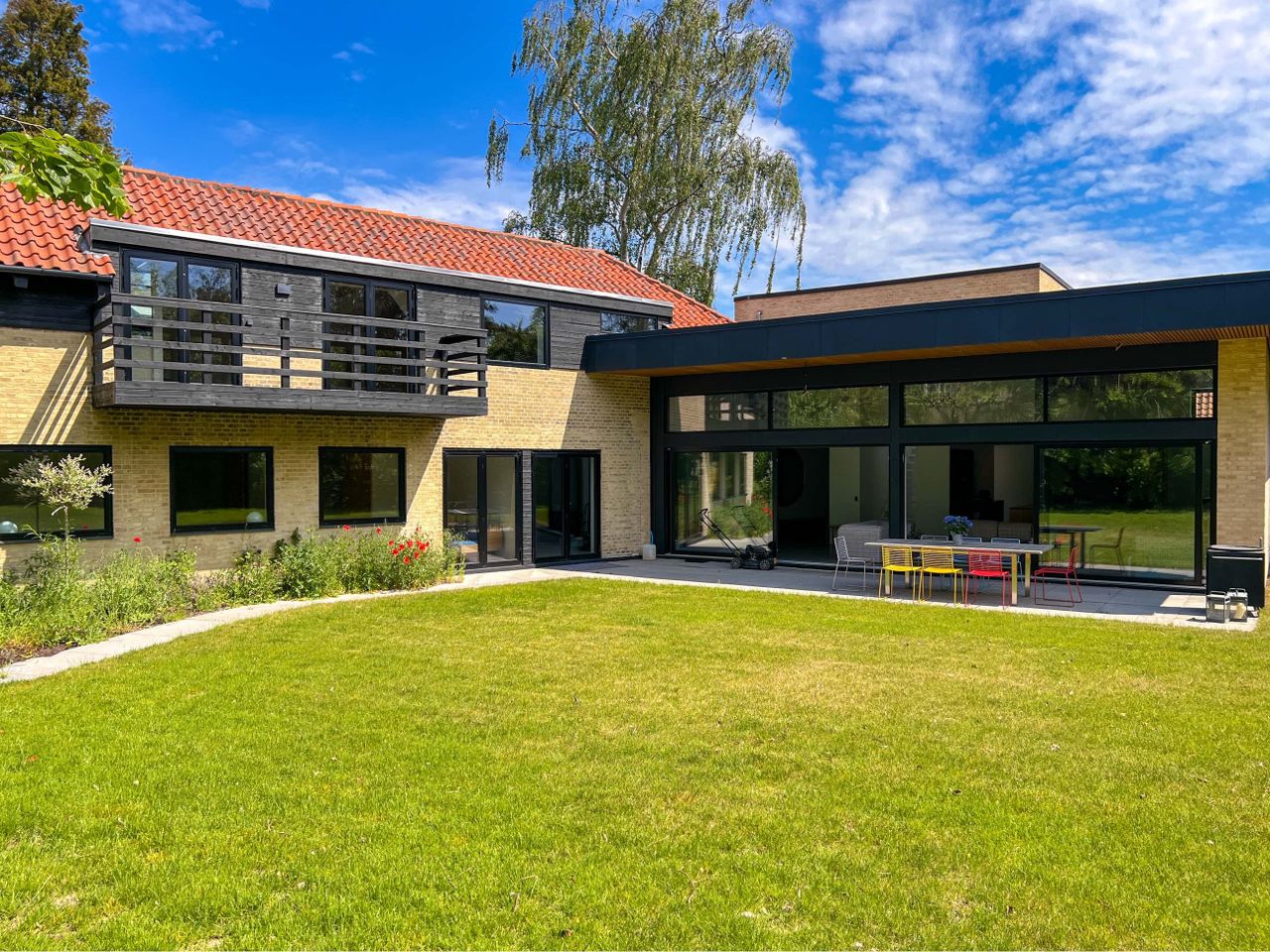 mursten med sorte vinduer. Dejligt beliggende på skøn sydvestvendt 1600 m² grund som næstsidste