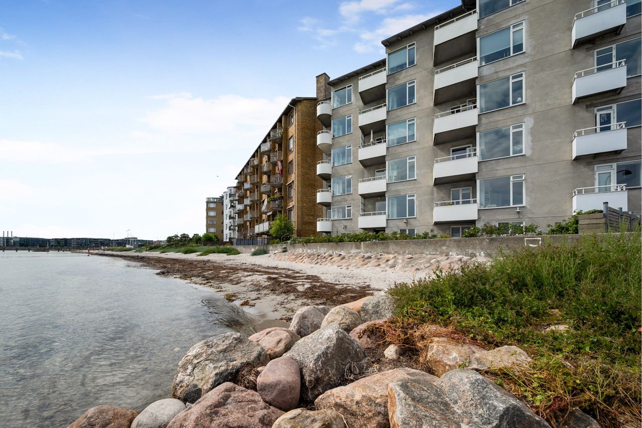 1937 med elevator og parkering, direkte til Øresund og indeholder 72 m² fantastisk, lys og rummelig bolig