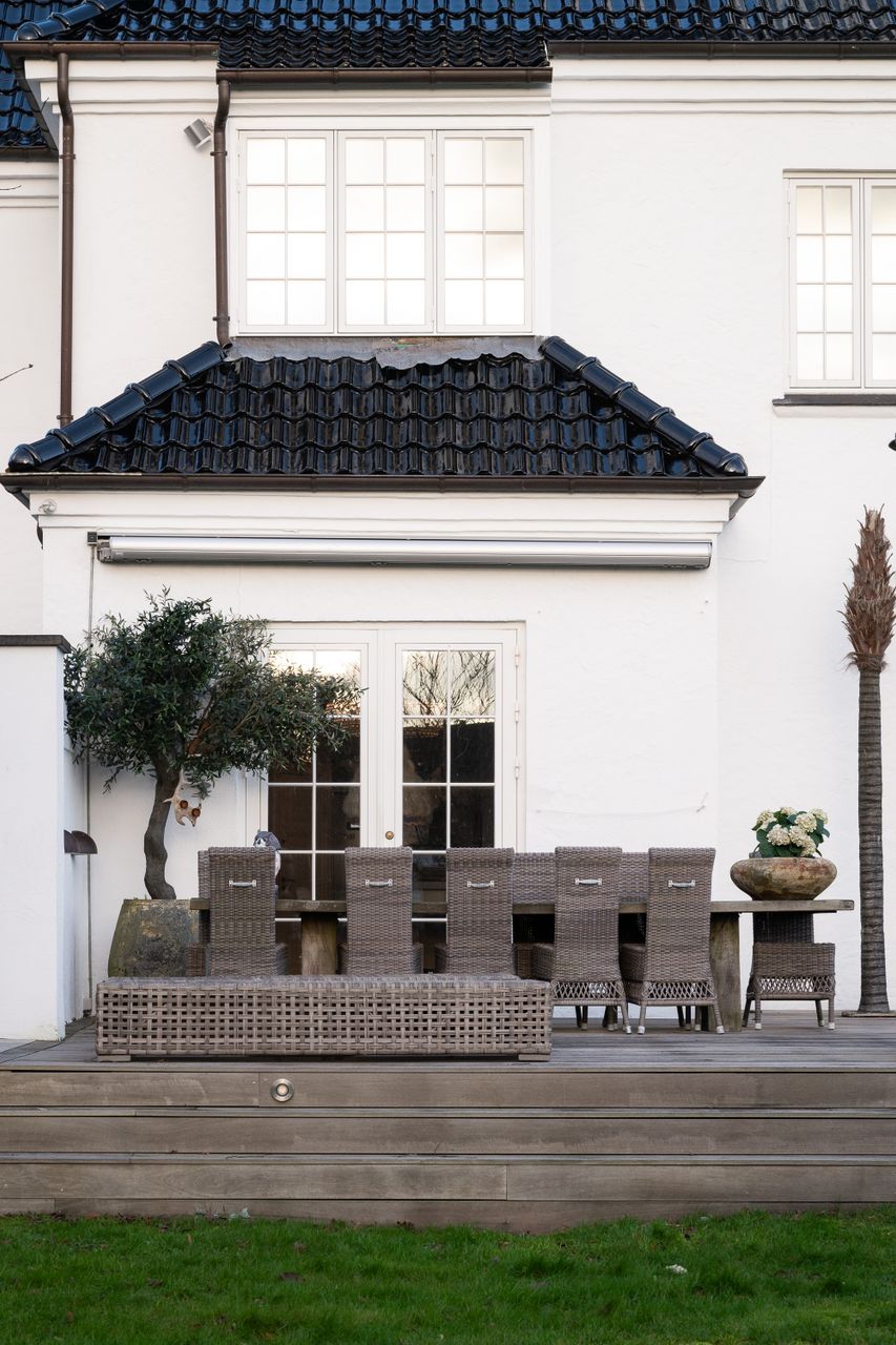Huset er delvis omkranset af en kæmpestor træterrasse, hvorfra man kan nyde solen og den betagende udsigt fra solopgang over Øresund til solnedgang bag Dyrehavens trækroner.