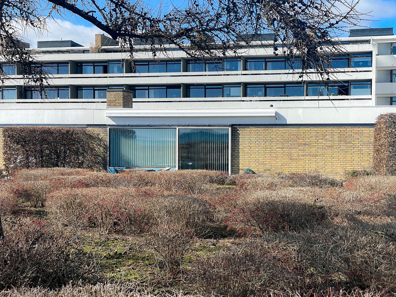 Et af de ikoniske fredede atriumhuse tegnet af arkitekt Arne Jacobsen og opført i 1961, pragtfuldt beliggende vis-à-vis Bellevue Strand med udsigt over Øresund til Sverige.