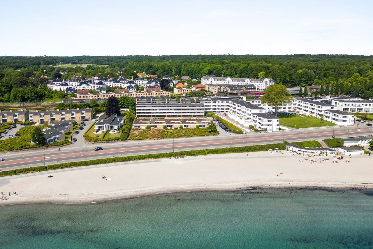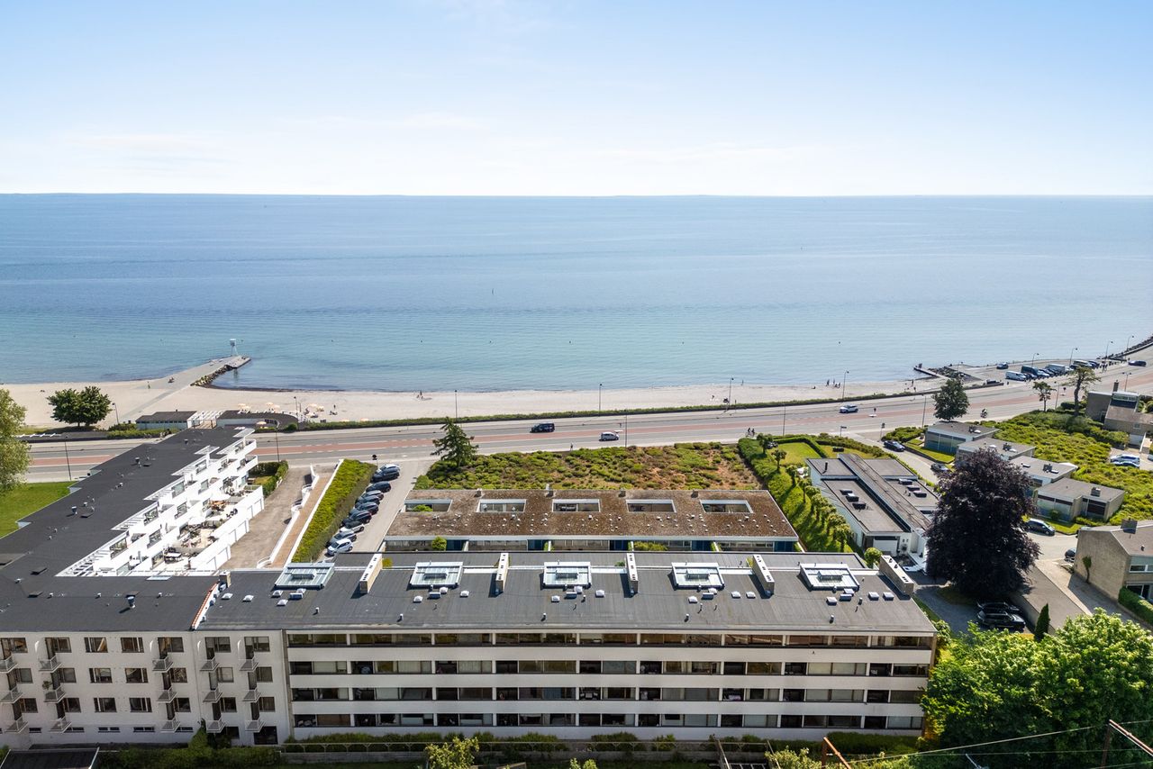 Lejligheden indeholder 125 m² lys og indbydende bolig med stor terrasse med udsigt til Bellevue Bugt og Øresund.