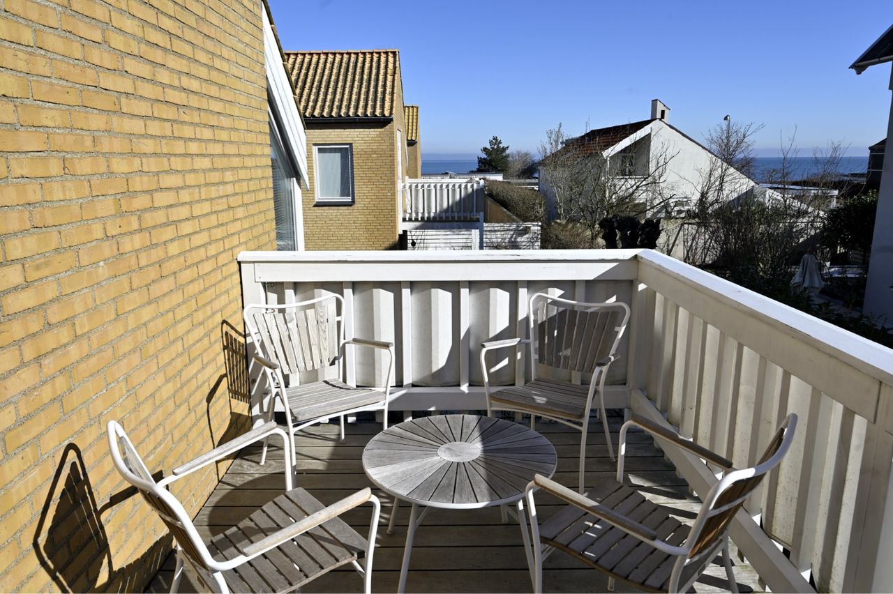en hyggelig syd- og vestvendt have på 274 m² med 2 terrasser, balkon med udsigt over Øresund, og få