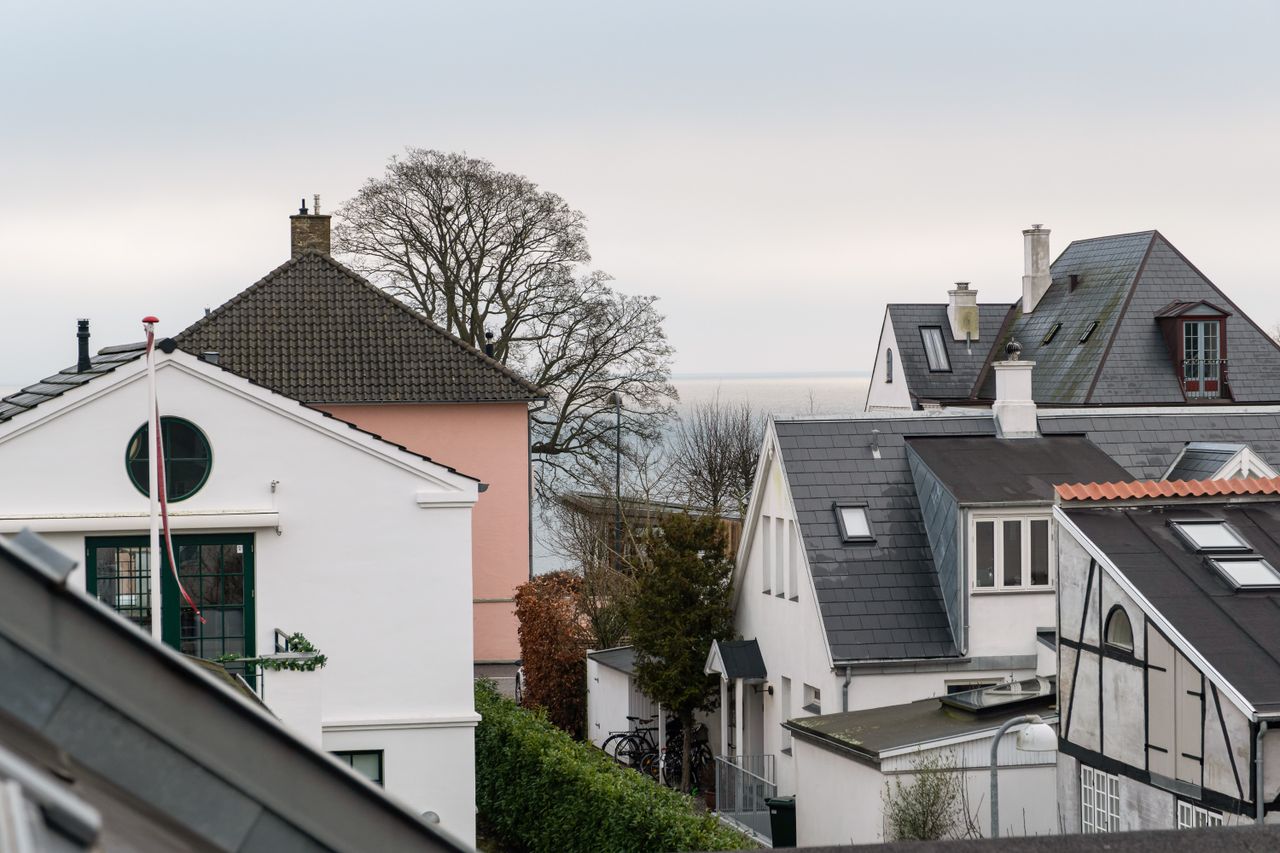 Tagetagen består af et stort alrum med udsigt over Taarbæks villatage og kig til Øresund.