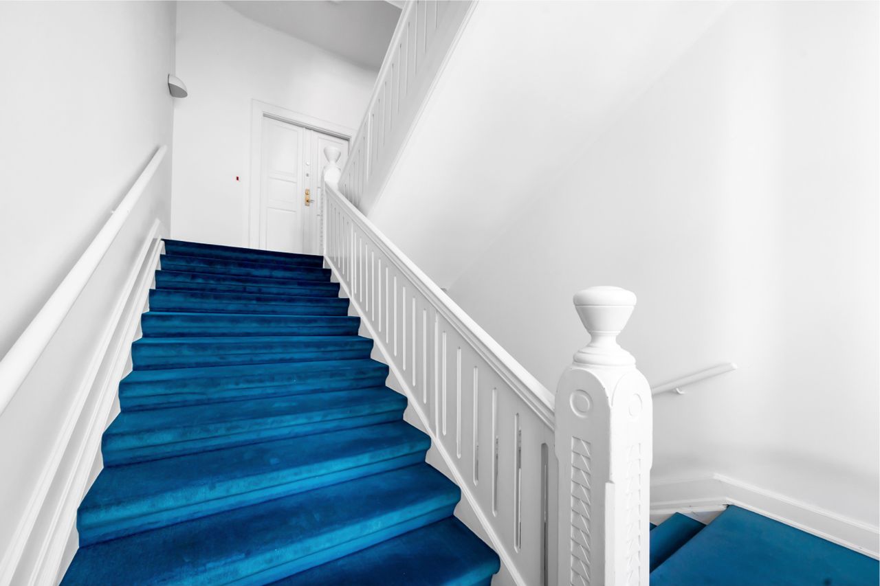 ejendommen som kun har en bolig på hver etage. Elegant trappeløb og elevator fører direkte op til